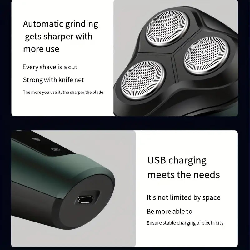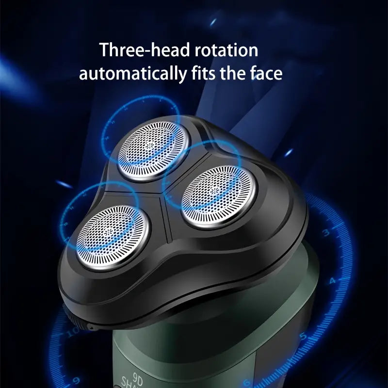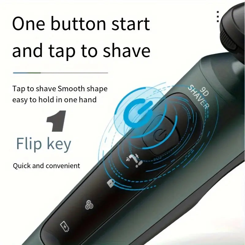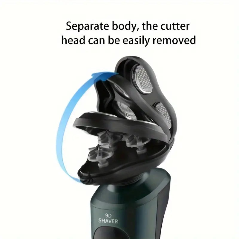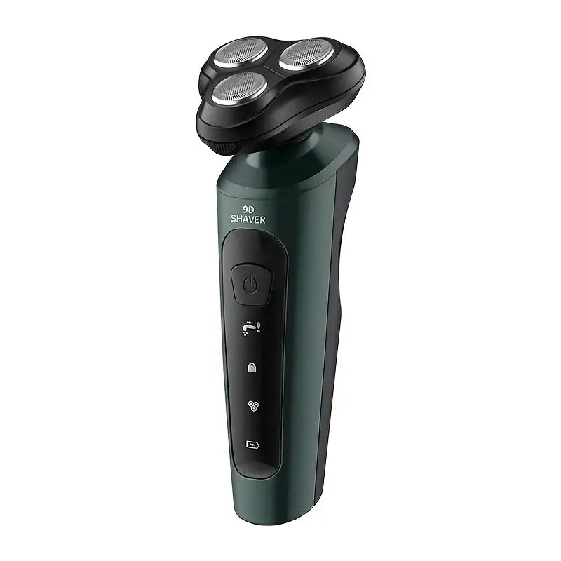 Afeitador eléctrico 9D con cabezales flotantes de última generación que se adaptan a cada contorno del rostro y cuello para un afeitado más apurado y cómodo. Cuenta con cuchillas de acero inoxidable, motor de alta potencia y tecnología silenciosa. Incluye funciones de recorte de patillas y bigote, pantalla LED para visualizar batería, carga rápida por USB y autonomía de larga duración. Resistente al agua, ideal para uso en seco o húmedo, fácil de limpiar y perfecto para el cuidado diario masculino.